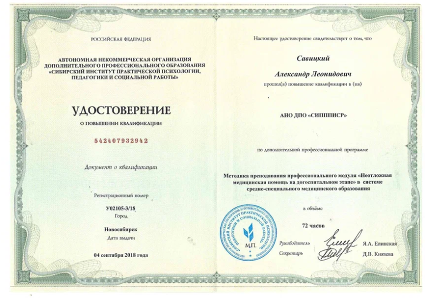 Курс ПК «Инструктор по обучению навыкам оказания первой помощи», 2023г