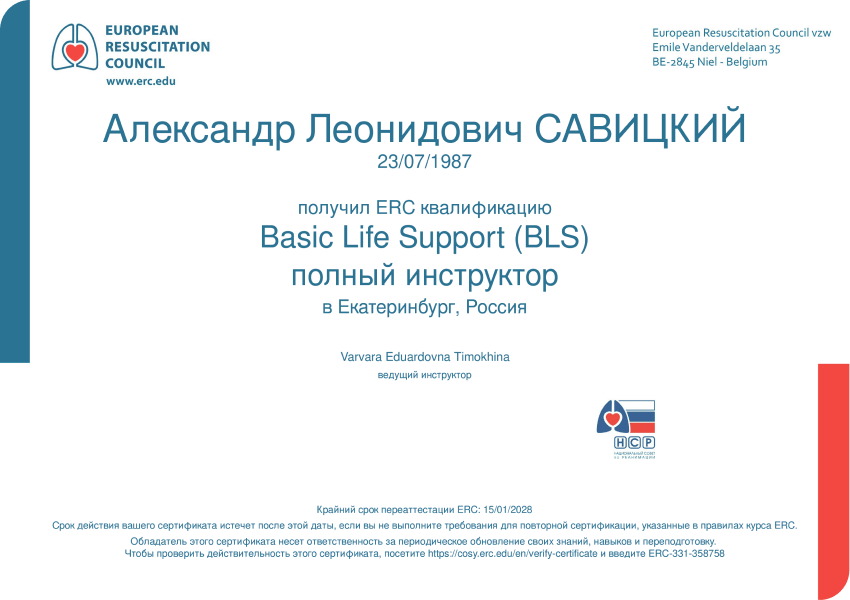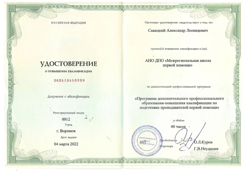 Курс «Повышение квалификации преподавателей первой помощи», 2022г