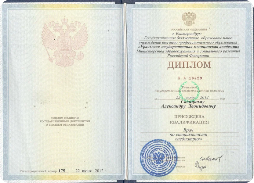 ГБОУ ВПО «Уральская государственная медицинская академия», 2012г.