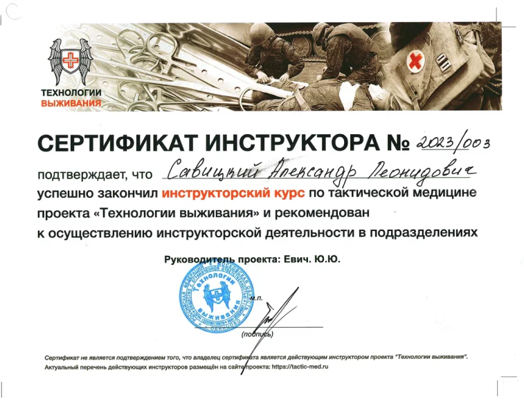 Инструкторский курс по тактической медицине, Технологии выживания, 2023г